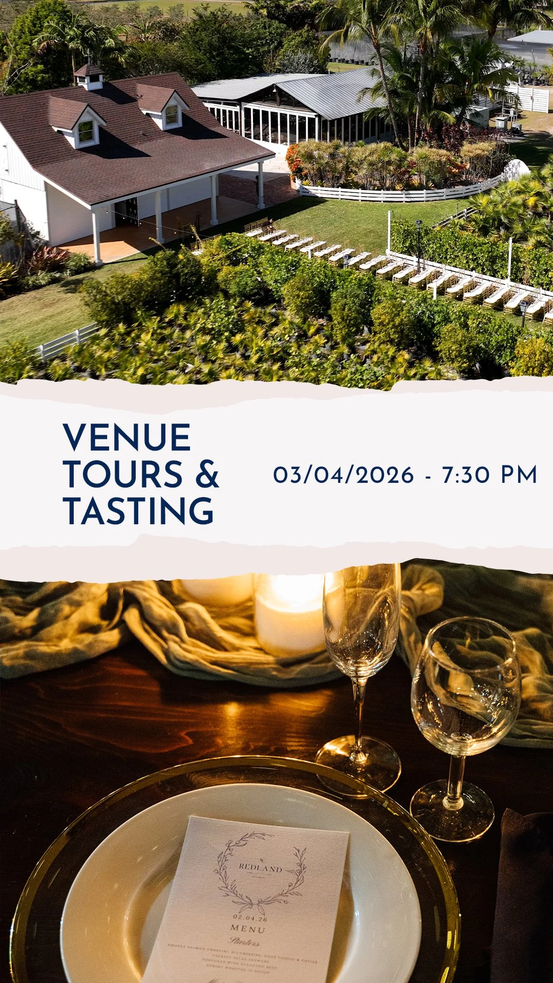 Join us for an exclusive Venue Tour & Tasting Night at Redland Farm Life on Tuesday, March 4th at 7:30 PM.